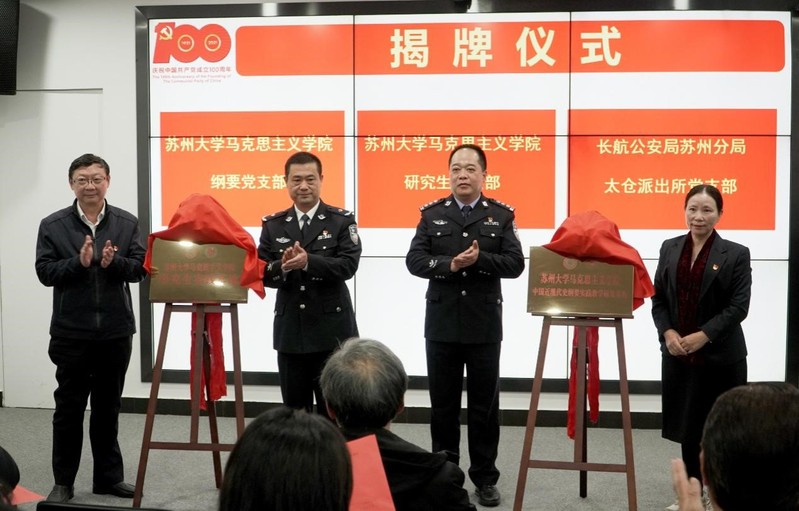依托太仓派出所警备趸船长江生态大保护教育实践基地的基础,苏州大学马克思主义学院中国近现代史纲要实践教学研究基地和马克思主义学院研究生实践基地正式入驻长航派出所。何健、陈建军和范敏华、陈新平共同为两个基地揭牌。今后三个支部将以两个基地建设为纽带,科学谋划,发挥各自优势,带动共建单位实现联建联学常态化,优化共建互动机制,把共建事项落到实处,用好用活实践教学研究基地,把党的理论学习与长江生态大保护实践结合起来,以高质量党建引领各项工作高质量发展。